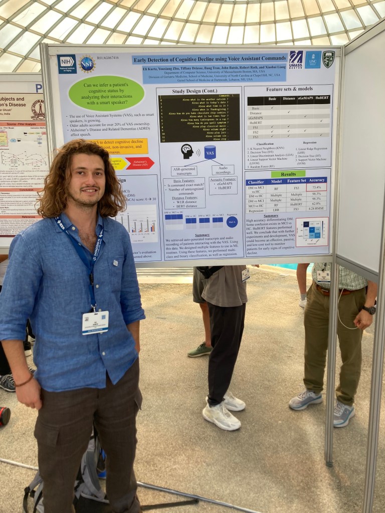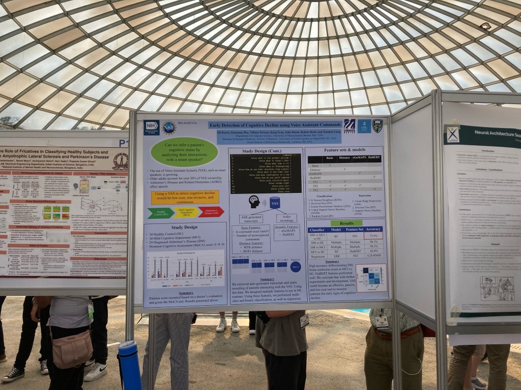 In the picture below, Eli is presenting our poster “Early Detection of Cognitive Decline using Voice Assistant Commands.”